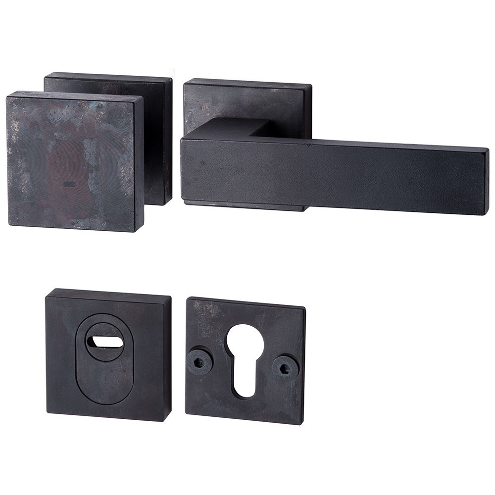 Beschrijving Veiligheidsbeslag uit de collectie "LECH" van HALCÖ, gemaakt van massief zwart gehard staal. Vierkant rozet voor een stoere, moderne look.