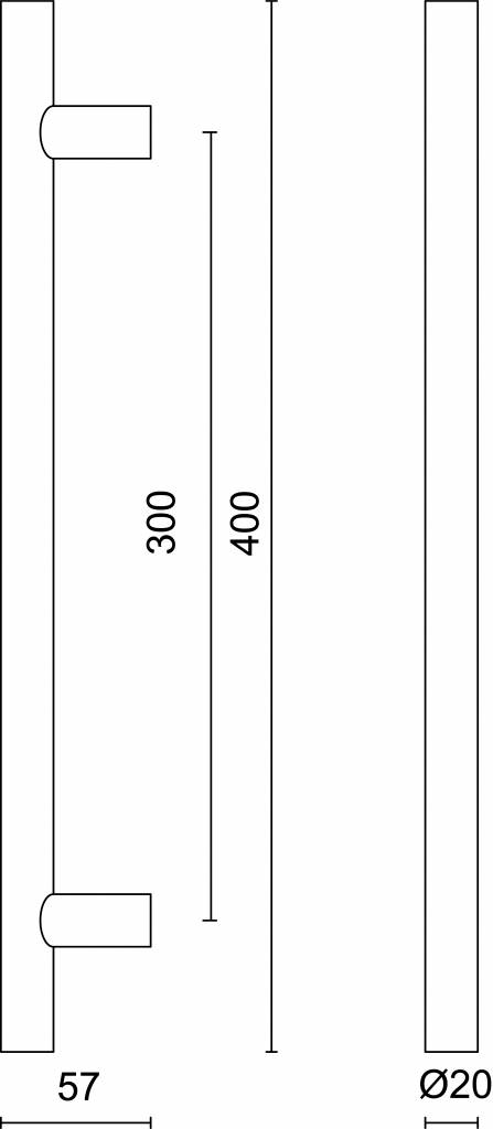 RVS deurgreep T 20/300/400 - doorgaande bevestiging