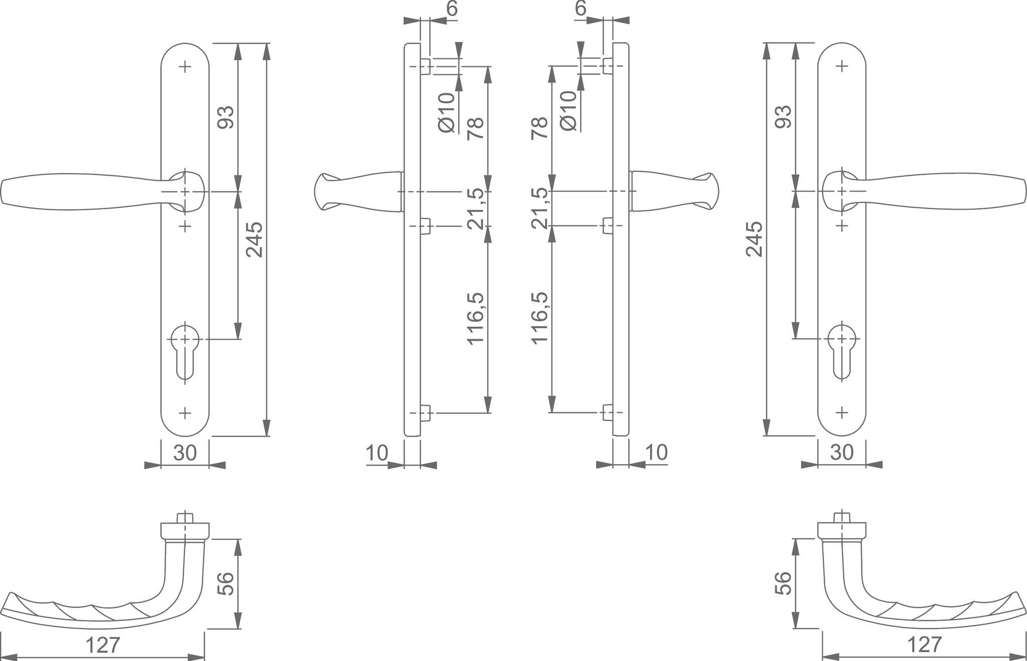 De schilden hebben een breedte van 30mm en zijn 245mm hoog. Ze worden op drie punten onzichtbaar bevestigd met 3 stalen schroeven (M6).