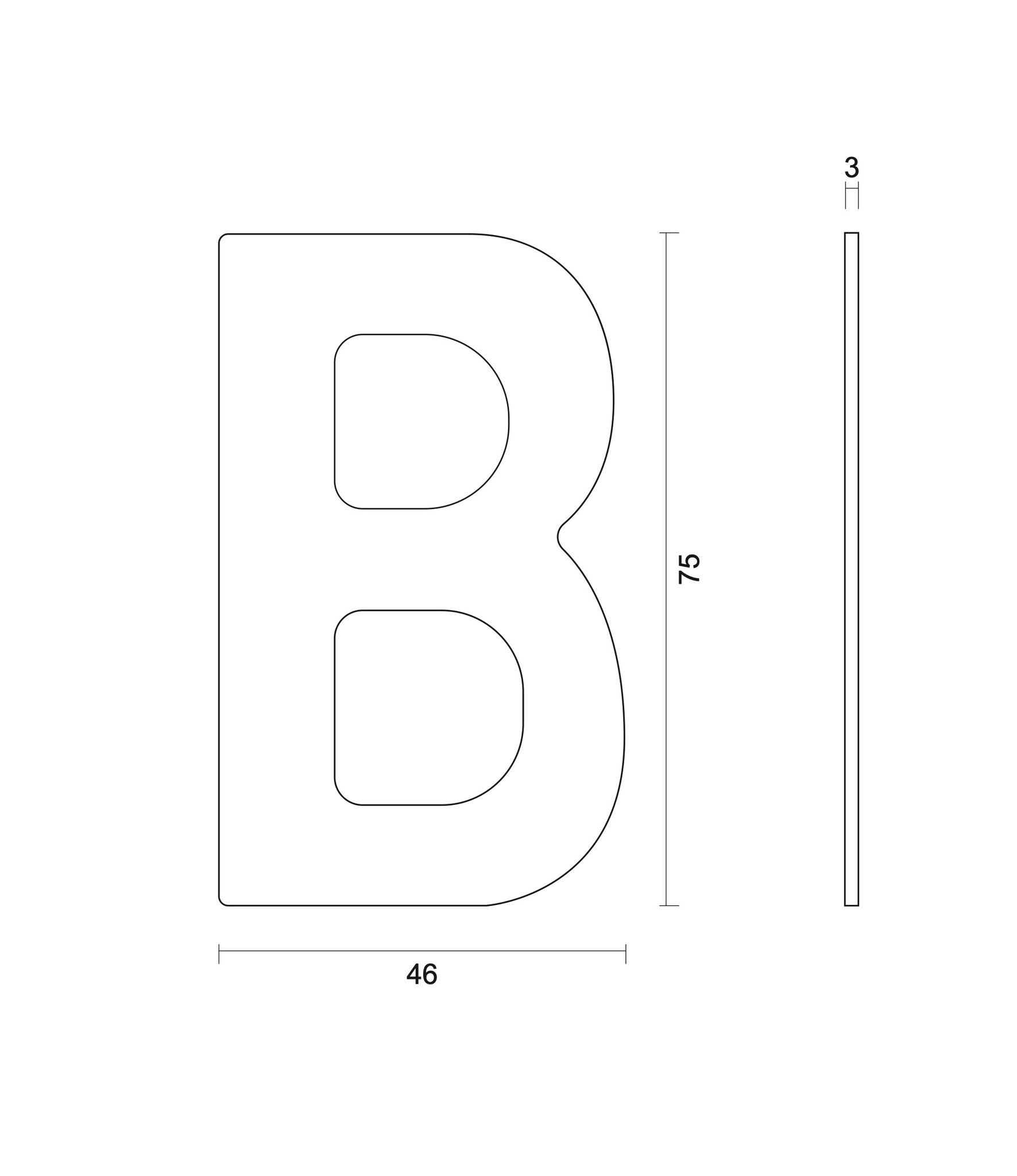 Kleinere uitvoering van een RVS huisletter "B" met een hoogte van 75 mm. De RVS huisletter is zelfklevend waardoor er geen gaten geboord moeten worden. De letter kan op elke vlakke gladde ondergrond geplakt worden.