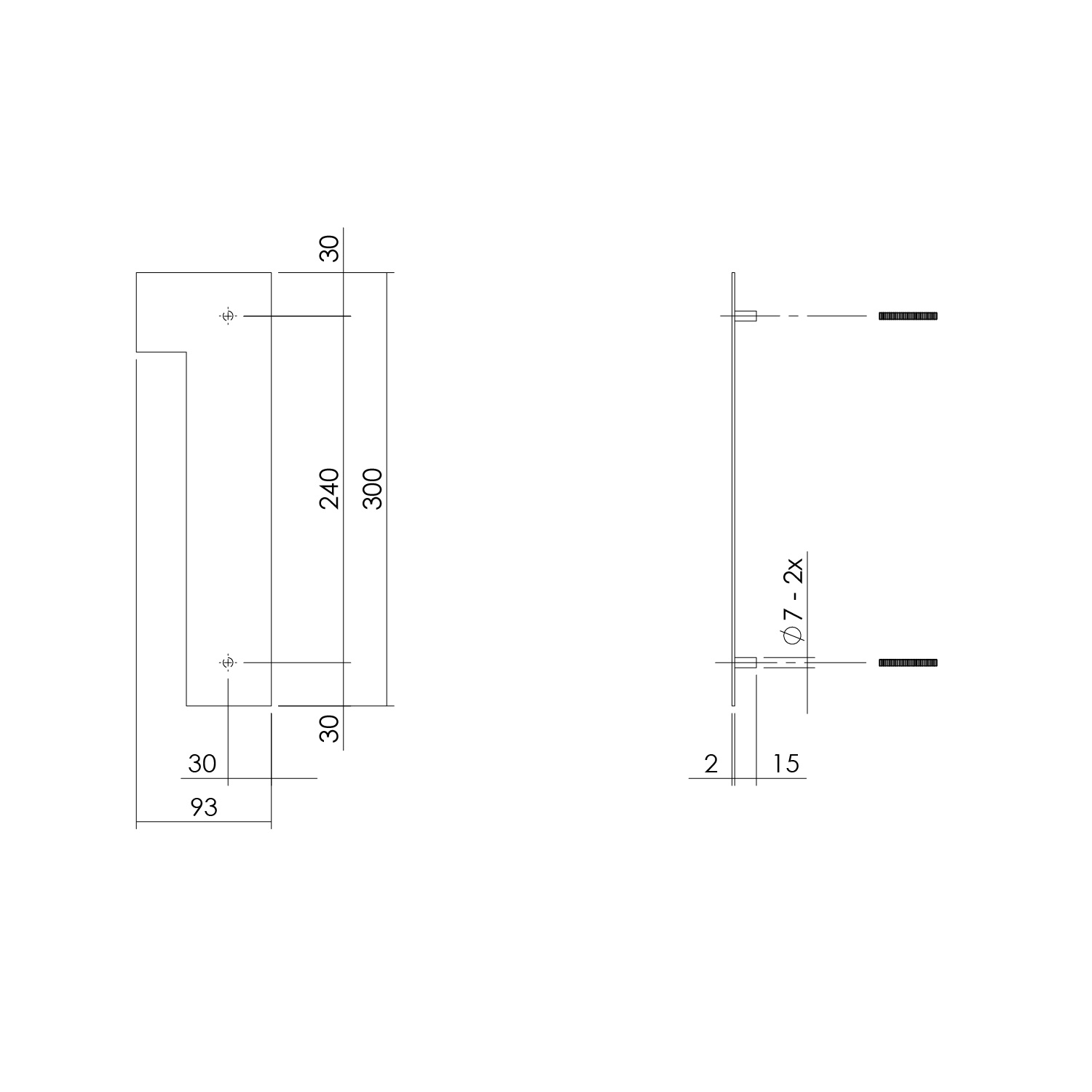Het heeft een hoogte van 300mm en een dikte van 2mm. Bij montage komt het huisnummer 15mm van de muur.
