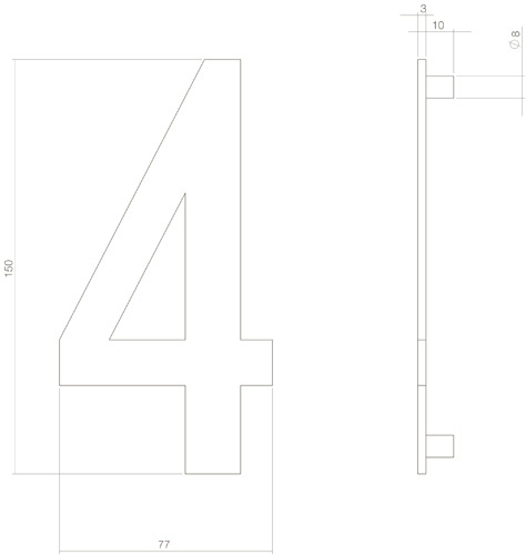 Intersteel huisnummer '4' van 150 mm hoog - Messing getrommeld PVD