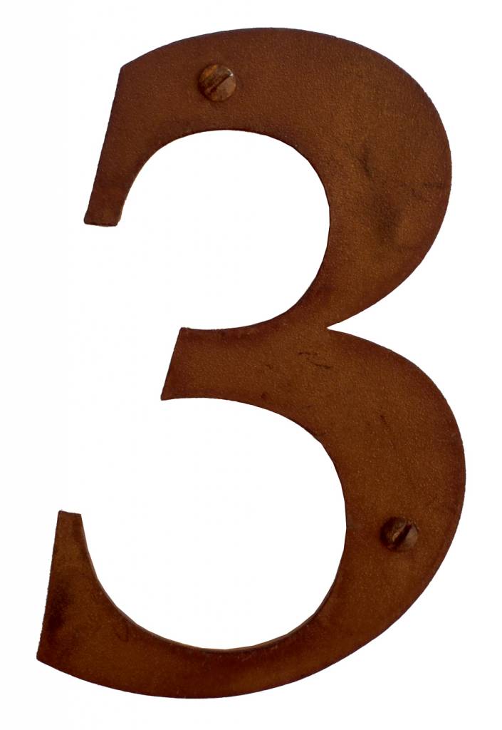 Beschrijving Huisnummer 3 roestkleurig voor bevestiging aan de muur