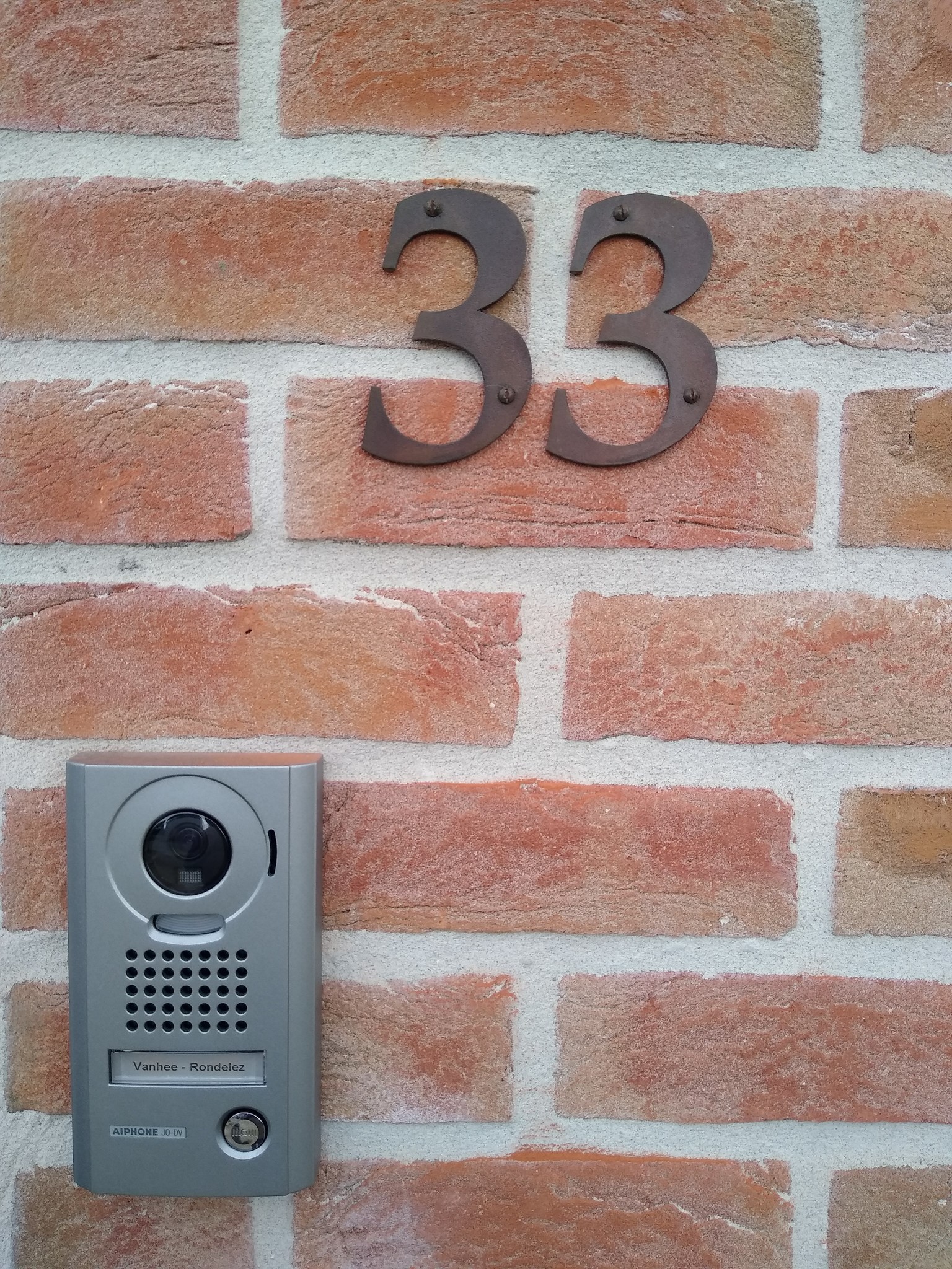 Het huisnummer heeft een platte vorm, een hoogte van 106mm en een dikte van 3mm.