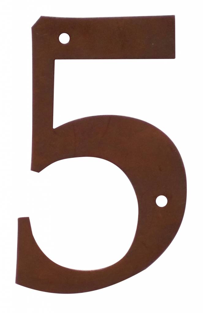 Beschrijving Huisnummer 5 roestkleurig voor bevestiging aan de muur