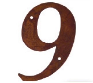 Beschrijving Huisnummer 9 roestkleurig voor bevestiging aan de muur