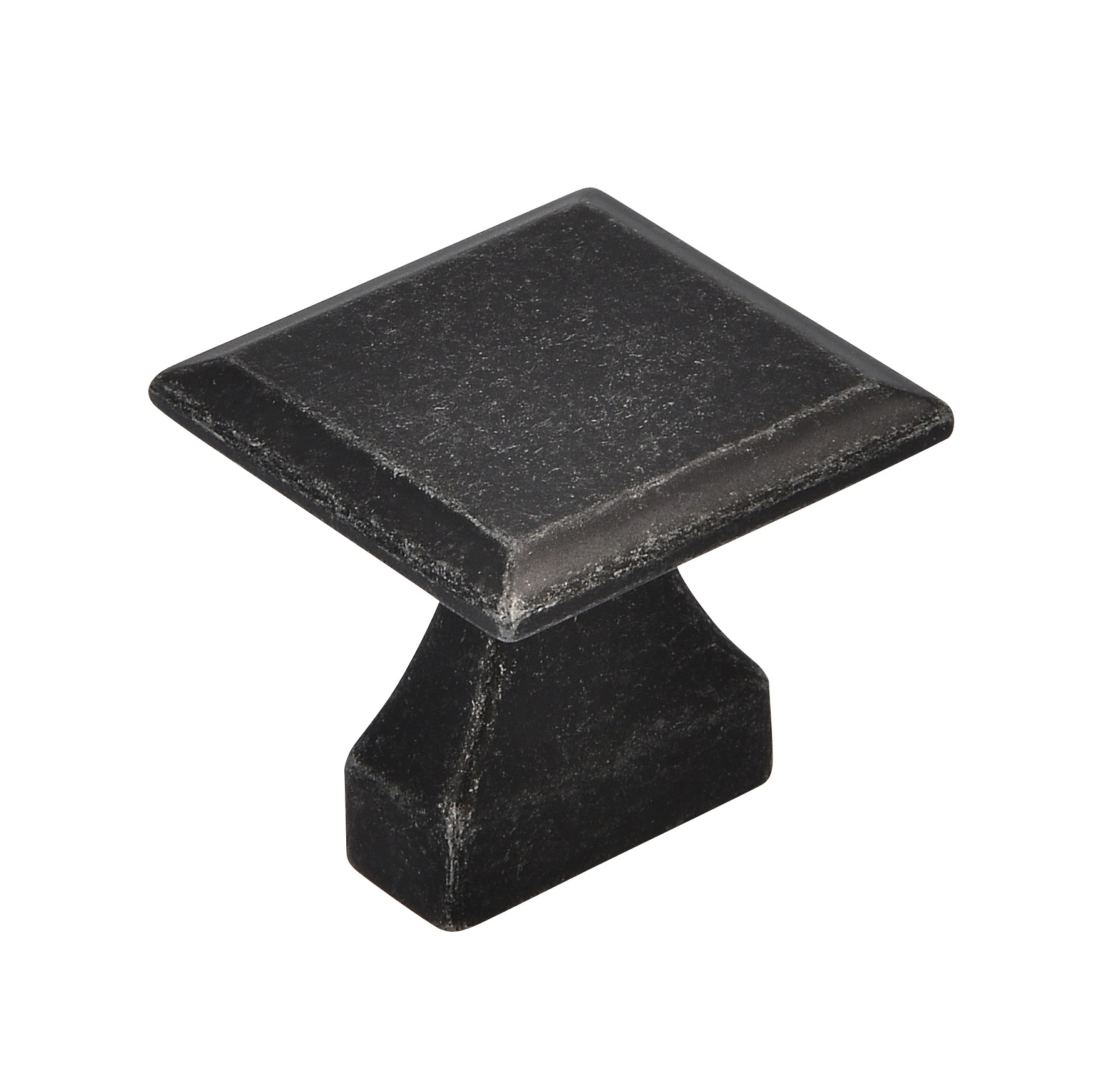 Mooie vierkante meubelknop uit zamac voorzien van een sterke ijzeren coating. De knop wordt geborsteld waardoor de speciale mat ijzeren look ontstaat en behouden blijft.