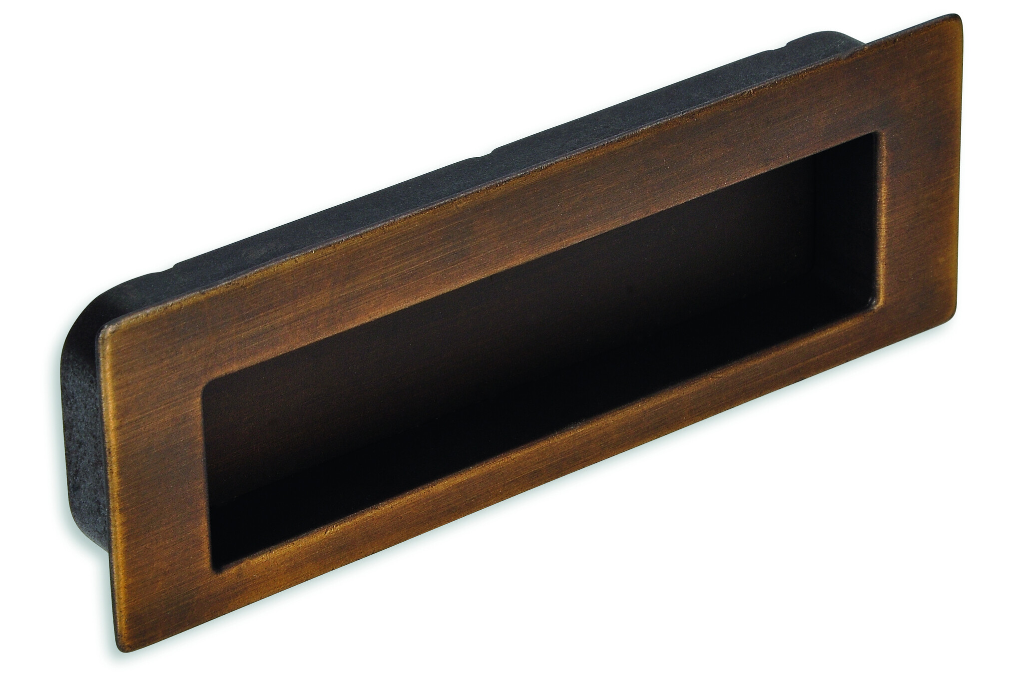 Deze rechthoekige inkapschelp is gemaakt uit zamac en afgewerkt met een antiek messing finish. De schuifdeurkom wordt geborsteld waardoor de antieke look ontstaat en behouden blijft.