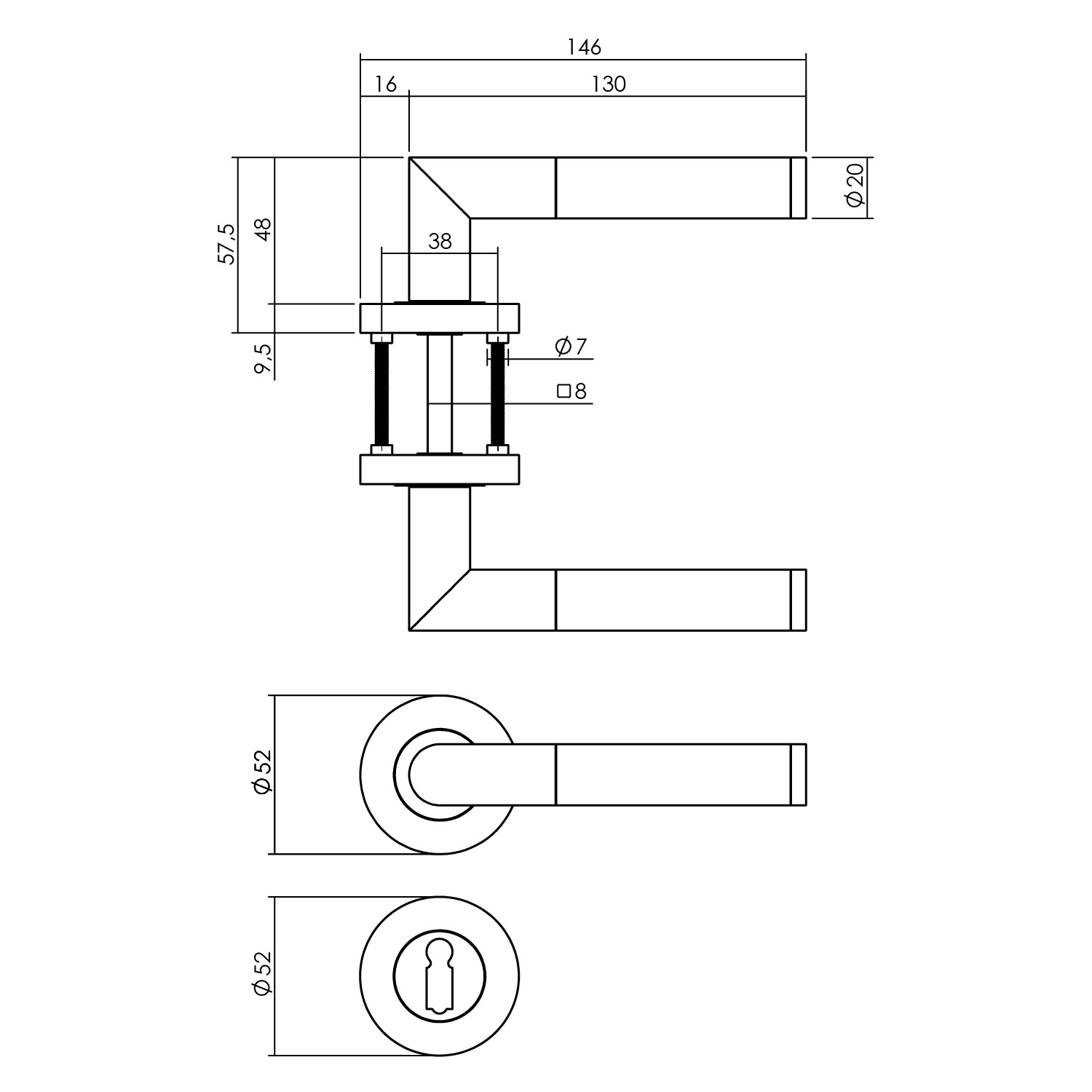 Deze massieve deurklinken kan u combineren met diverse producten in antracietgrijs. Hierbij kunt u denken aan ronde rozetten met sleutelgat, profielcilindergat of met een toilet-/badkamersluiting (zie hieronder bij gerelateerde producten).