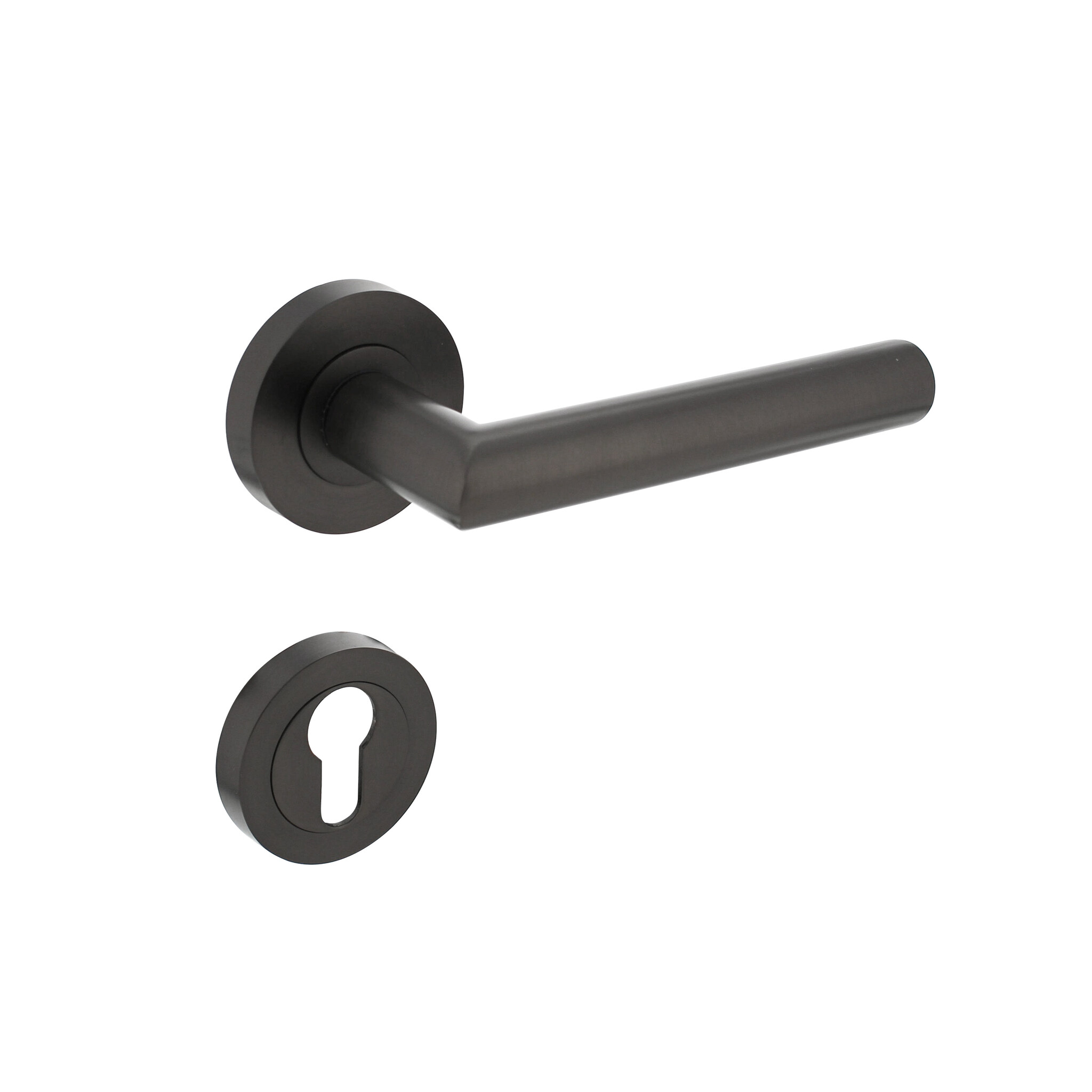 Beschrijving Intersteel Deurkruk Bastian op ronde rozet Ø52x10 mm antracietgrijs leverbaar in 4 varianten