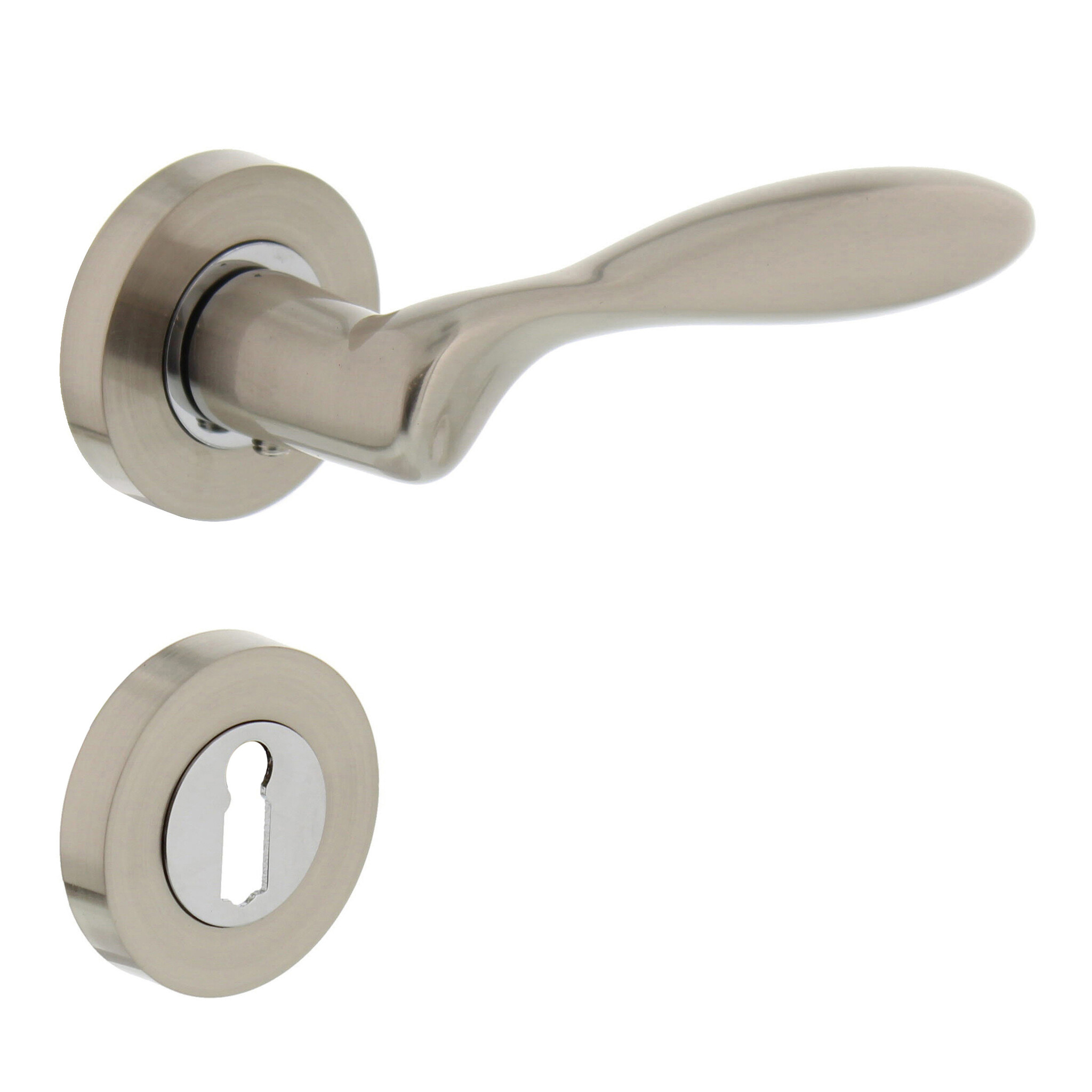 Beschrijving Intersteel Deurkruk "George" op rozet van Ø52 x 10mm in nikkel mat leverbaar in vier varianten