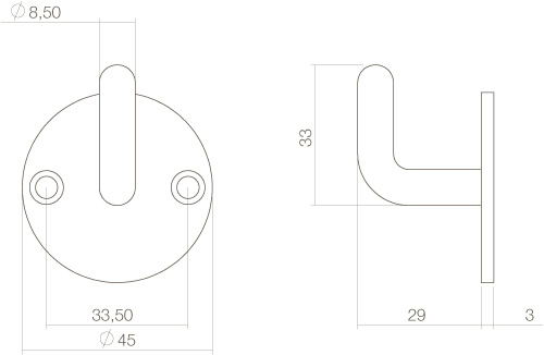Deze zwarte haak op een rond rozet heeft een lengte van 32 mm en een diameter van 45 mm en is uitgevoerd in roestvast staal.