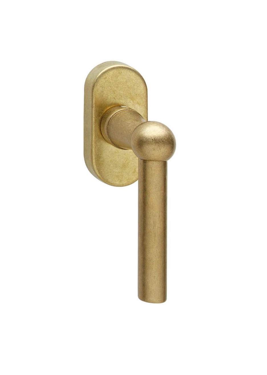 De messing raamkruk wordt per stuk geleverd inclusief bevestigingsmaterialen en bijhorende stift van 7x7x40mm.