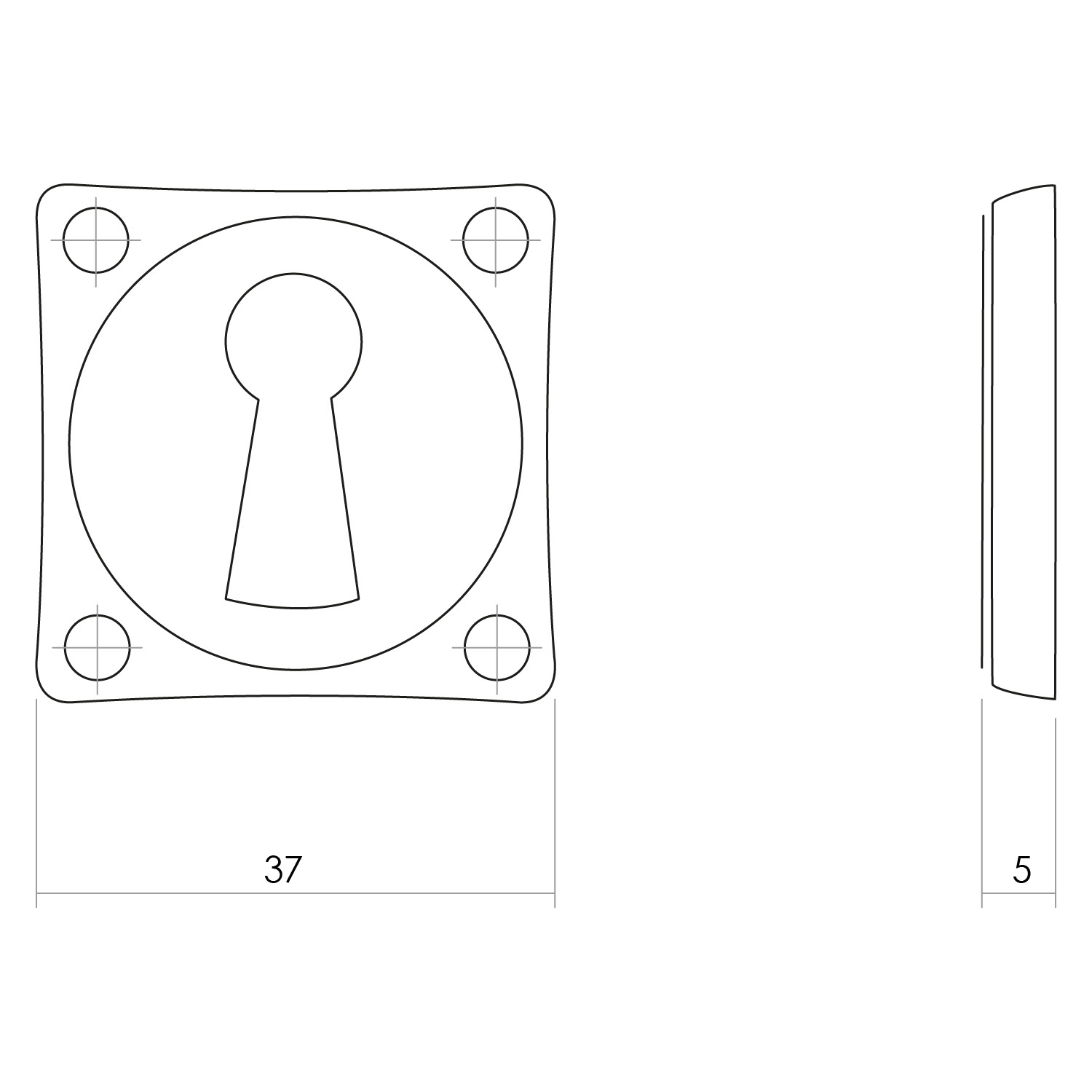 Beschrijving Paar Intersteel Rozetten met sleutelgat & schroefgat vierkant (38x38x7mm) messing getrommeld