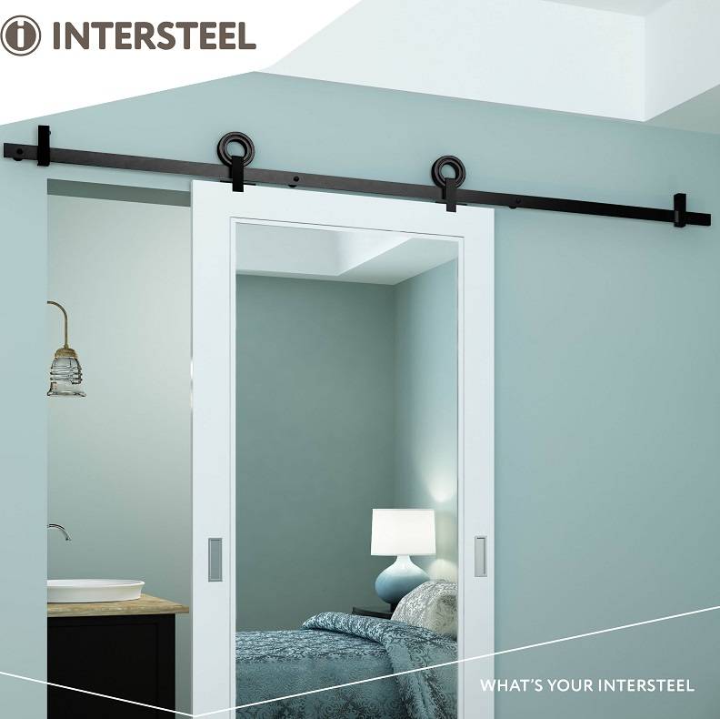 Dit stalen schuifdeursysteem heeft een lengte van 2 meter en is afgewerkt met een mat zwarte poedercoating.