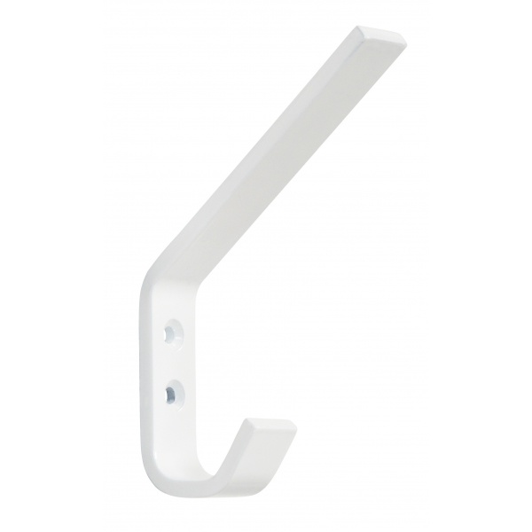 Beschrijving Enkele Hoed- en jas haak uit aluminium met een witte eind afwerking