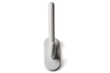 Beschrijving Enkele witte jas-/hoedhaak uit kunststof met een modern design
