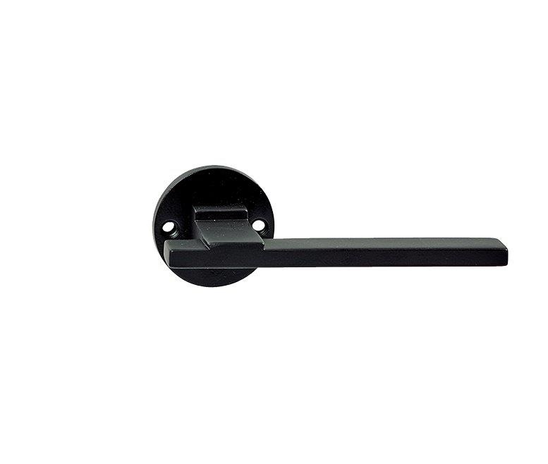 Beschrijving Paar geveerde deurkrukken uit de VILLE-collectie, met afwerking in oud zwart