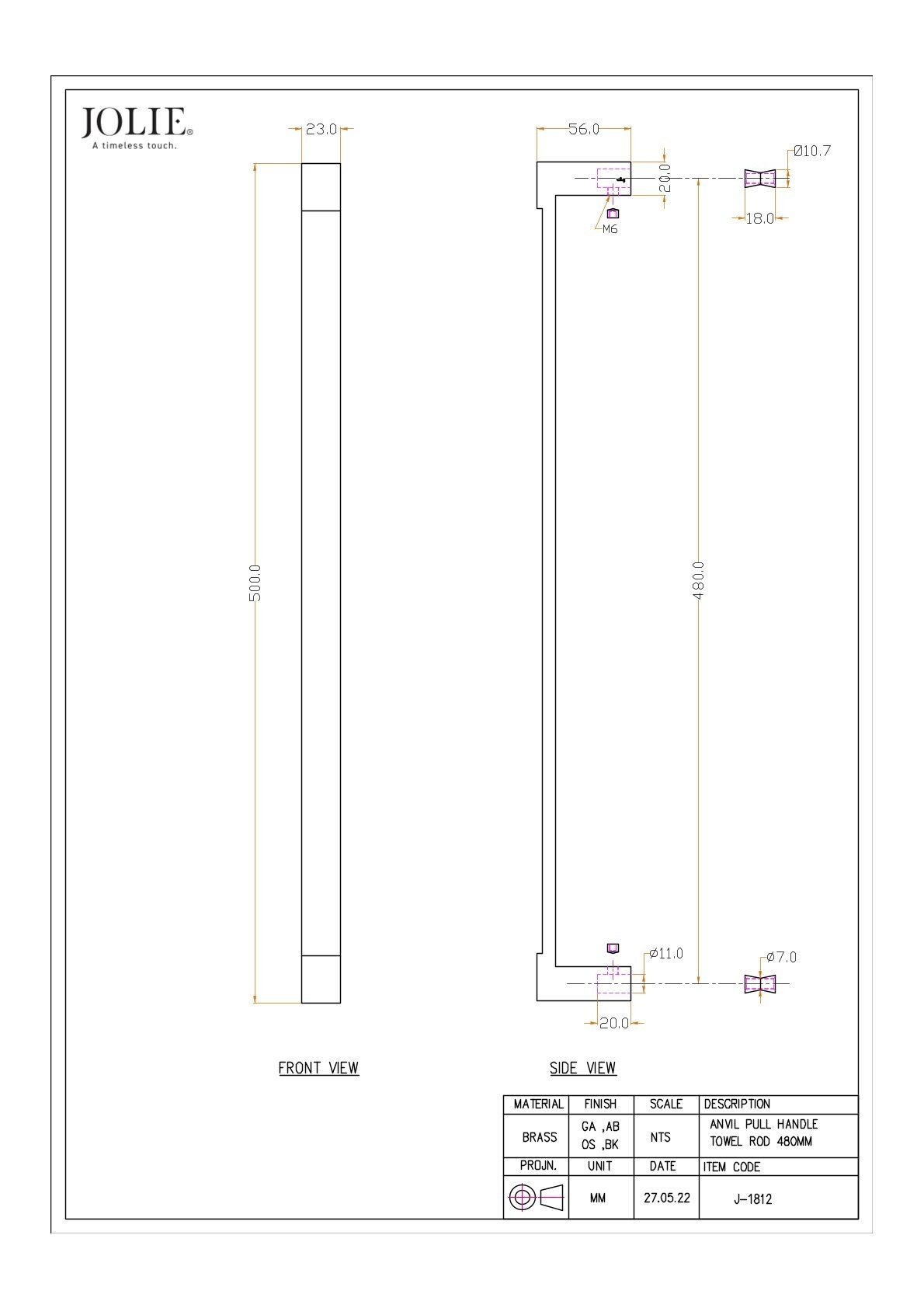 Zoals bij alle JOLIE-creaties wordt ook deze handdoekhouder met de hand gegoten uit massief messing en zorgvuldig gepatineerd, waardoor elke uitvoering uniek is in karakter en textuur.