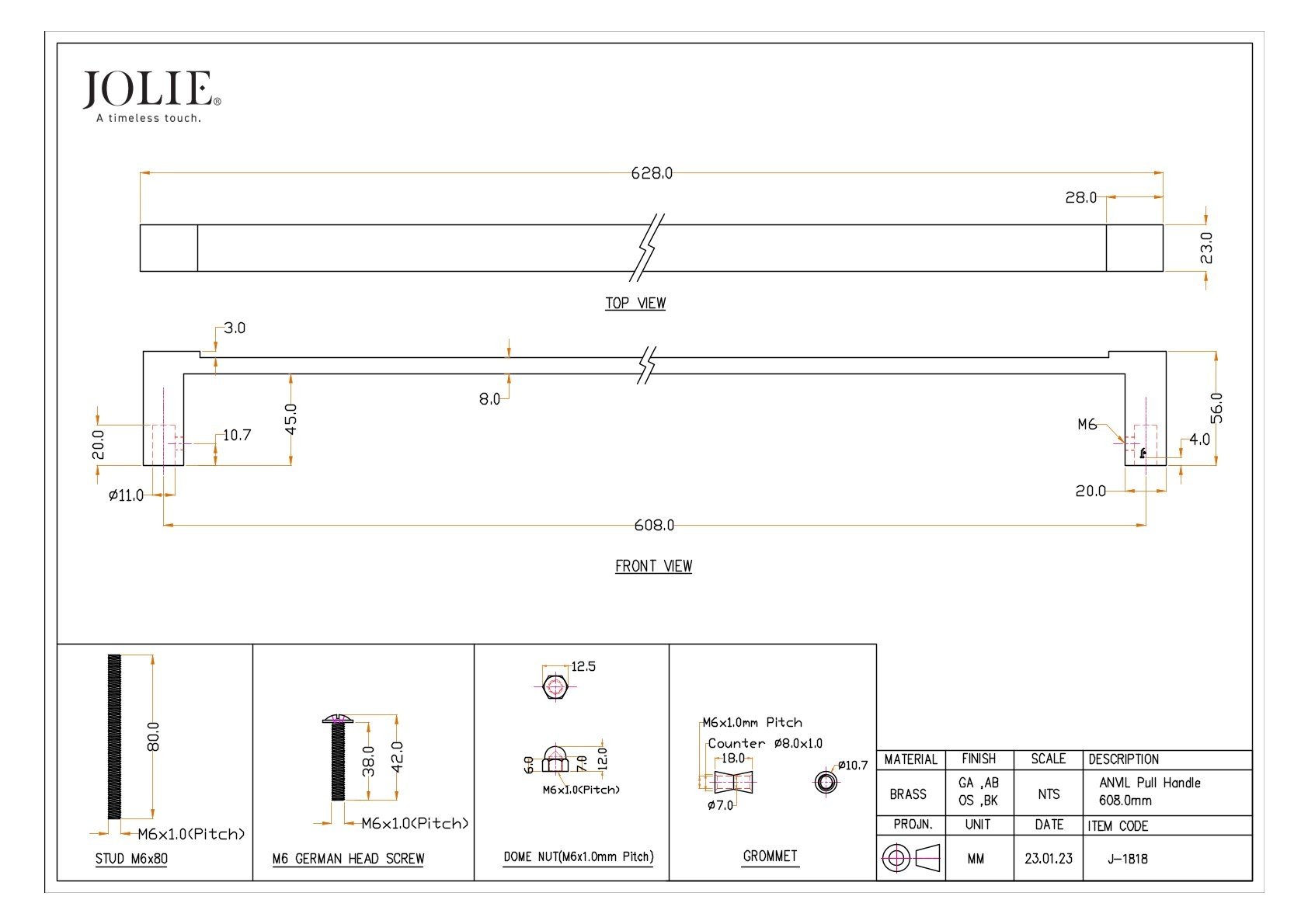 Verkrijgbaar in de luxueuze JOLIE-finishes Aged Gold, Aged Bronze, Old Silver en Black, en perfect te combineren met de volledige ANVIL-collectie.