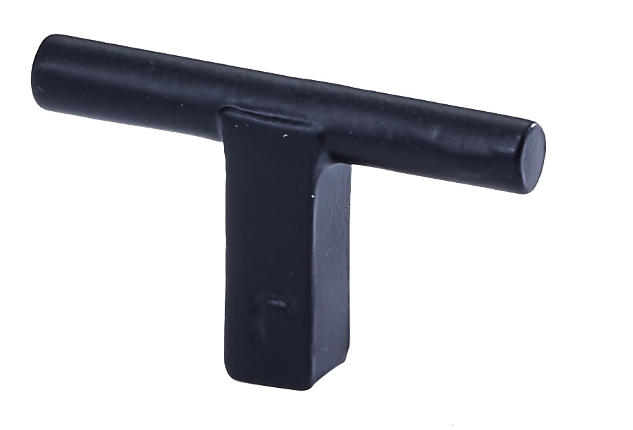 Beschrijving Zandgegoten meubelknoppen CORE in T-vorm ontworpen door JOLIE design uitgevoerd in het zwart verkrijgbaar in twee afmetingen