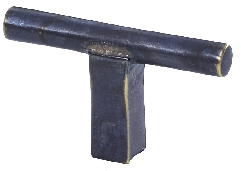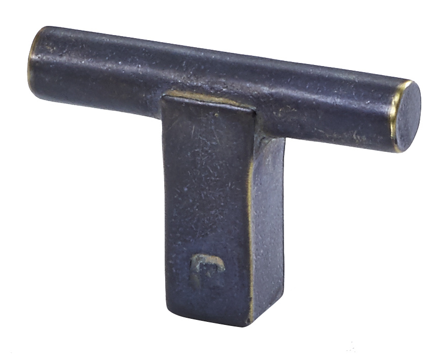 Beschrijving Zandgegoten meubelknoppen CORE in T-vorm ontworpen door JOLIE design uitgevoerd in verouderd brons verkrijgbaar in twee afmetingen
