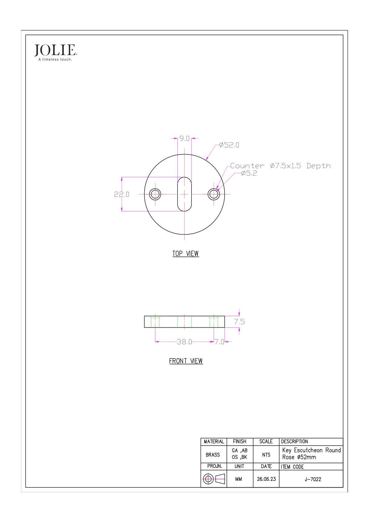 De JOLIE sleutelplaatjes J-7022 vormen een elegante en hoogwaardige afwerking voor uw deurbeslag. Ze zijn vervaardigd uit massief messing en geproduceerd volgens een ambachtelijke zandgietmethode, wat zorgt voor zowel karakter als duurzaamheid.