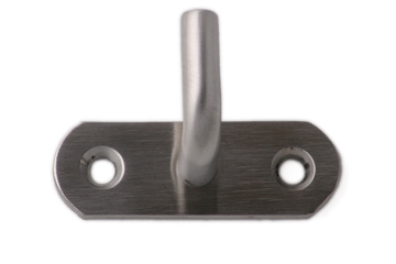De haak staat op een vlakke achterplaat met afgeronde hoeken en is makkelijk te bevestigen.
