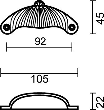 Beschrijving Kastgreep Schelp uitgevoerd in ijzer