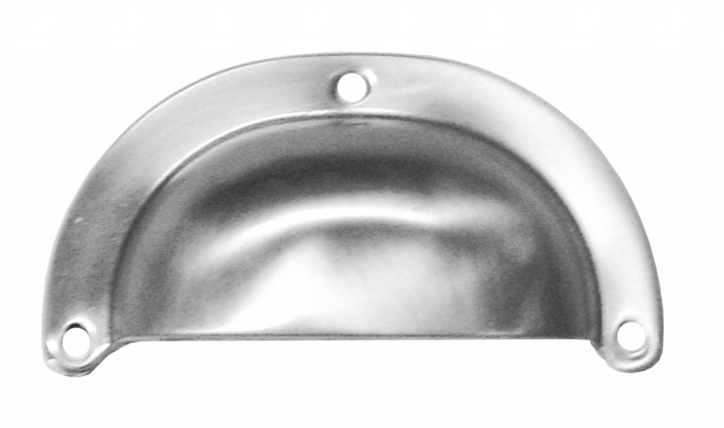 Schelpvormige meubelgreep in RVS.