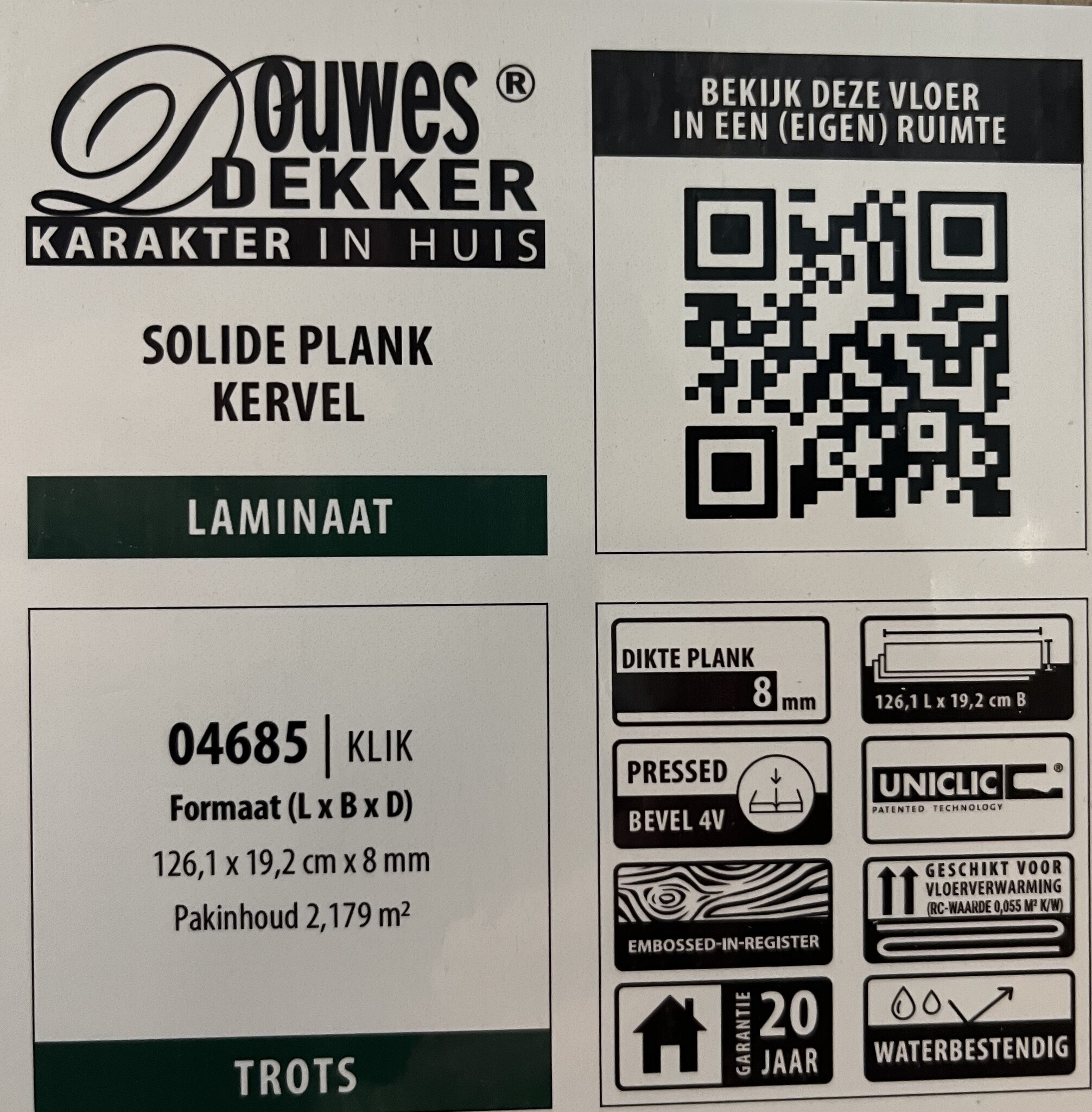 Beschrijving Trots Solide en waterdichte laminaat - 04685 Kervel van Douwes Dekker. Laminaatvloer van zeer hoge kwaliteit met een natuurgetrouwe afwerking