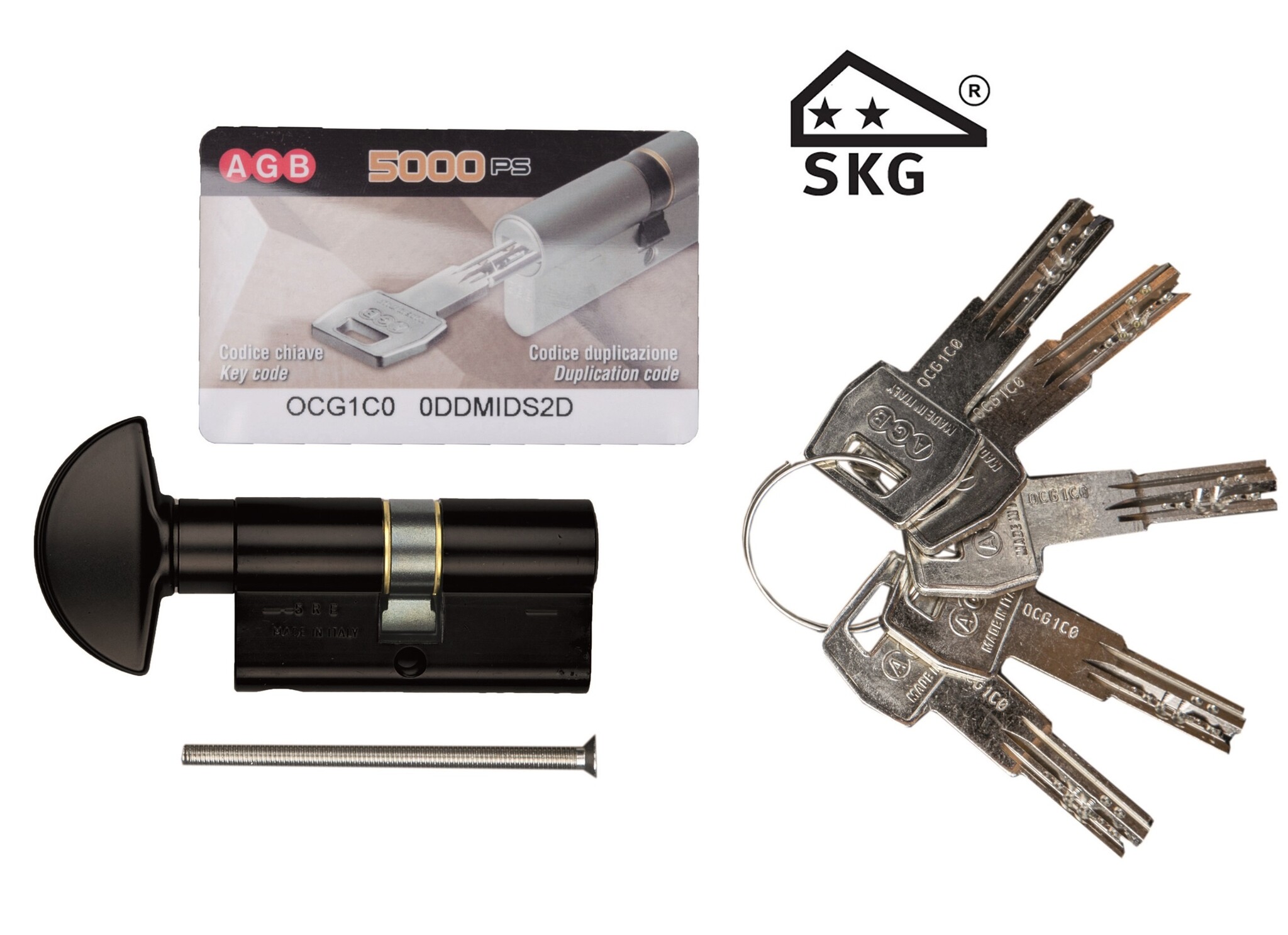 Zwarte knopcilinder AGB veiligheid 5000 PS SKG** op sleutelnummer