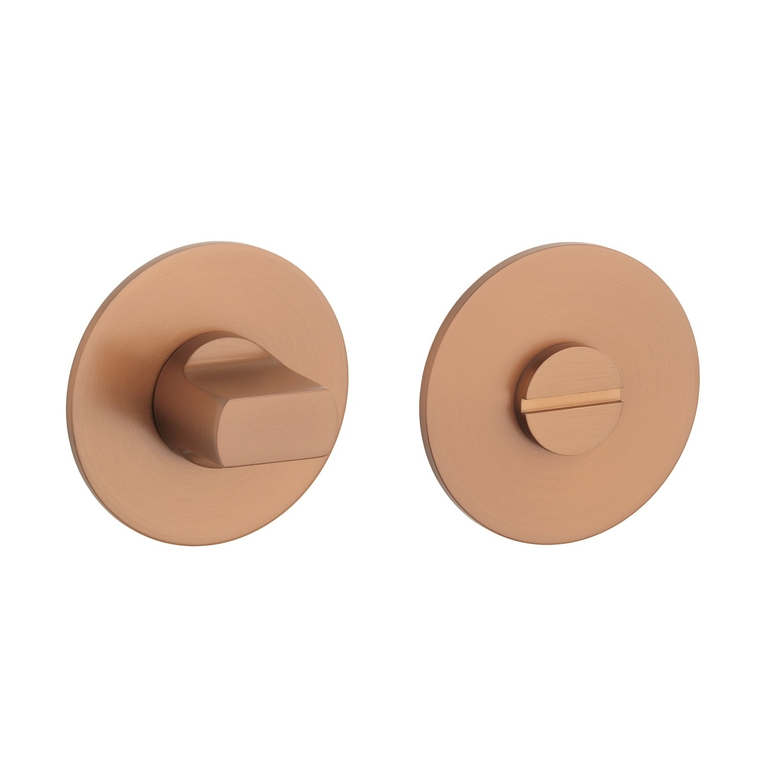 Extra dun rond WC garnituur van slechts 3 mm dik gemaakt uit RVS en afgewerkt met een mooie mat koperen PVD coating. Deze mooie koperen PVD kleur volgt perfect de nieuwe kleurtrend.