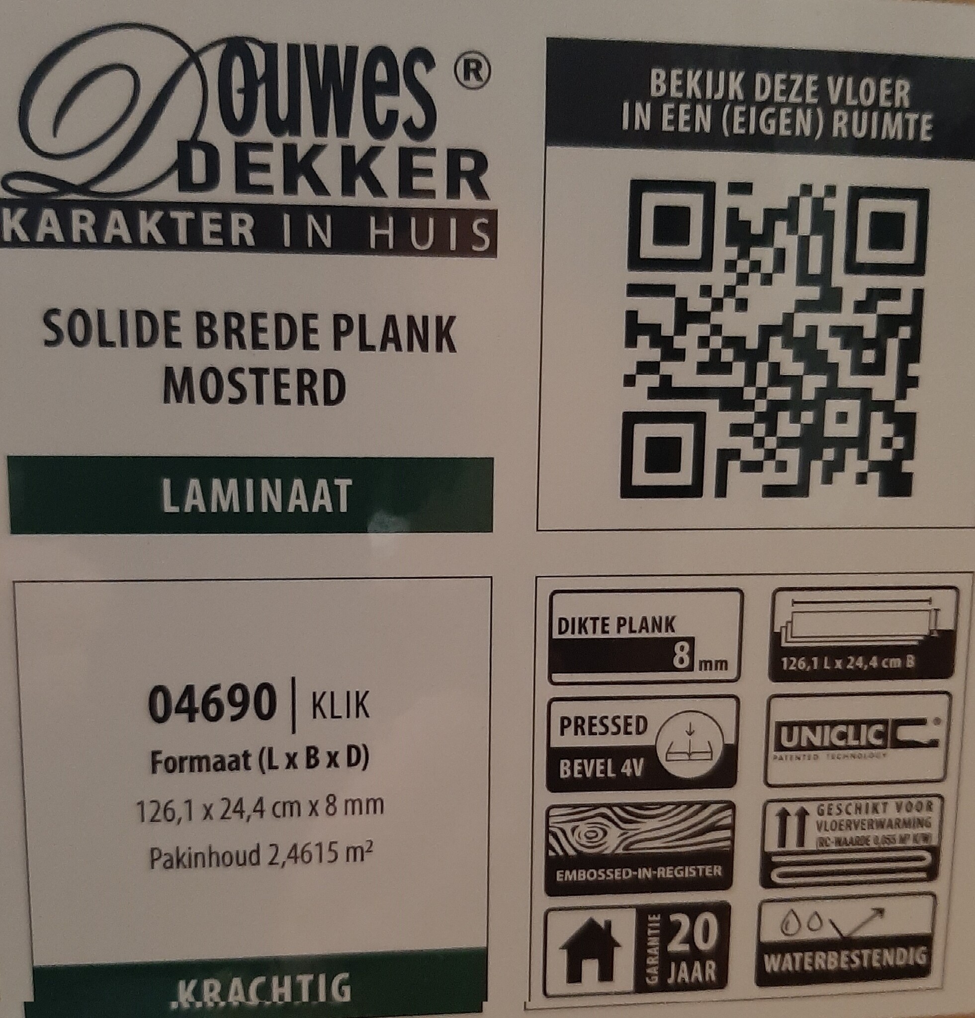 Beschrijving Krachtig Solide en waterdichte laminaat - 04690 Mosterd van Douwes Dekker. Laminaatvloer van zeer hoge kwaliteit geschikt voor elke ruimte