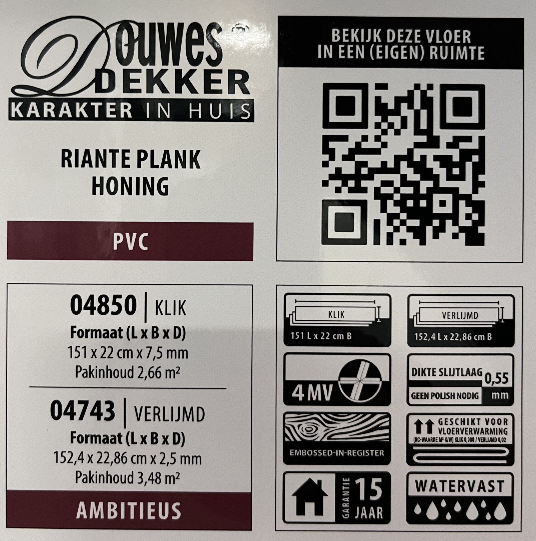 Beschrijving PVC Laminaat - 'Ambitieus' 04850 honing van Douwes Dekker. Sterke krasvrije en waterbestendige vloer met een huishoudelijke garantie van maar liefst 15 jaar