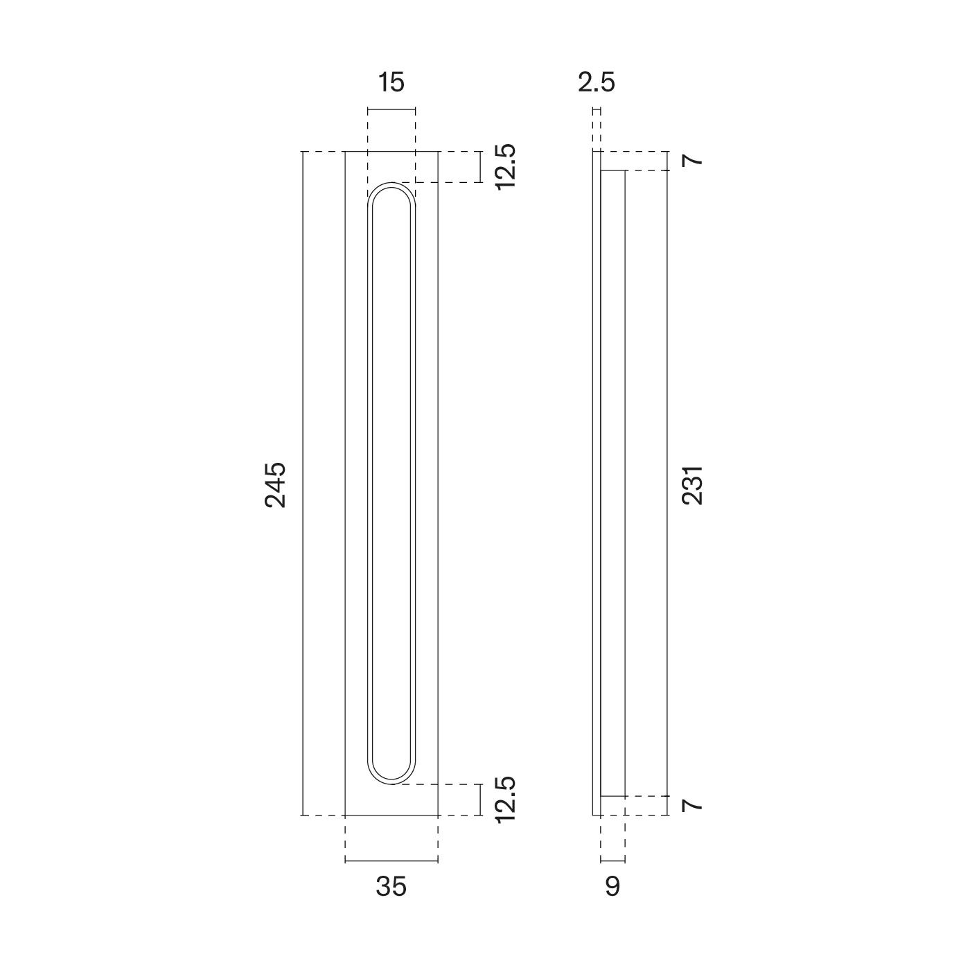 Deze smalle mat gouden schuifdeurkom van  35 mm breed ven 245 mm hoog heeft een rechthoekige vorm en past zeer mooi in elk interieur.
