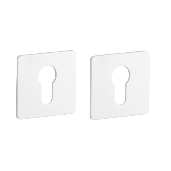 Witte vierkante cilinderplaatjes KVADRAT 1711 op Ultra dunne rozetten van 3 mm