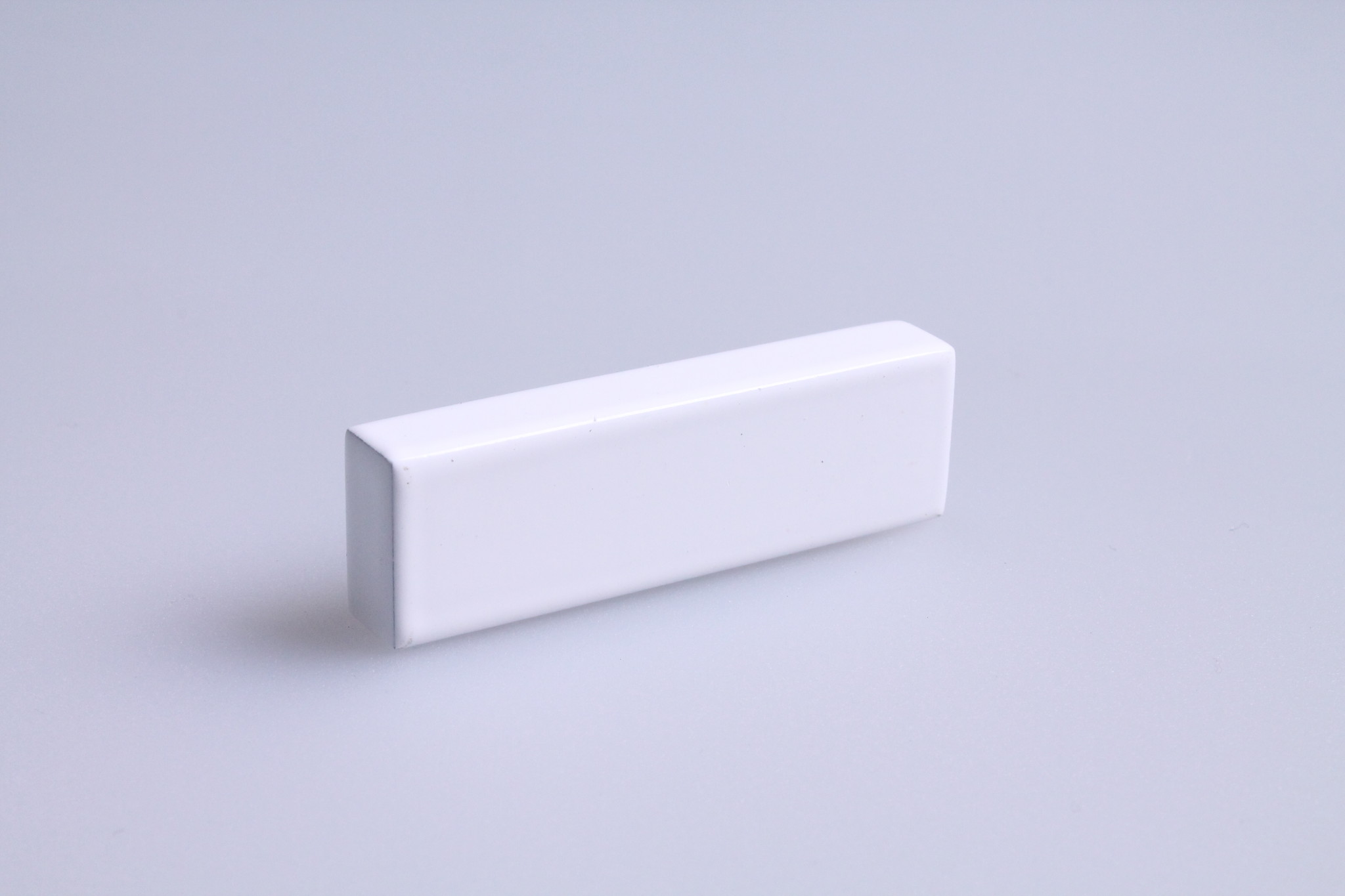 Beschrijving Rechthoekige meubelknop PICCOLO uit messing met een dikte van 8 mm en 50 mm breed uitgevoerd in het mat wit