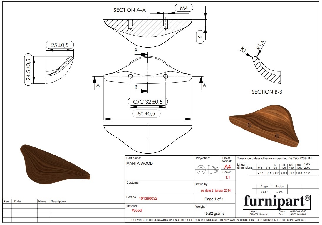 Deze houten meubelgreep komt uit 022 Collectie van Funipart. De collectie voor houten meubelgrepen is ontworpen door Kaschkasch, een ontwerp studio voor product ontwerp & art direction.