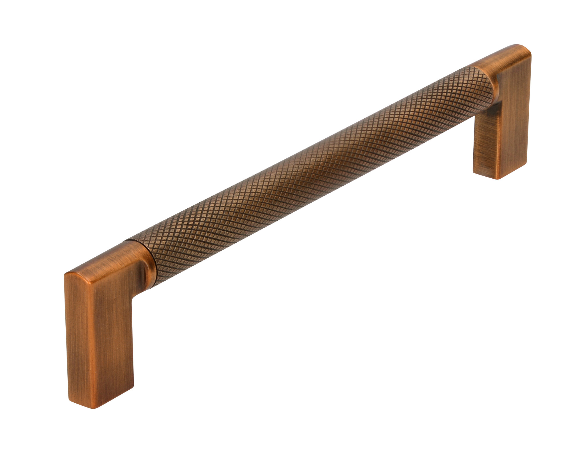 Beschrijving Meubelgreep uit aluminium met antieke look uitgevoerd in messing geborsteld met een kruislings geslepen patroon