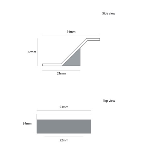 Dit greepje met een lengte van 53 mm, een breedte van 34 mm komt 22 mm naar voor. Het wordt per stuk geleverd inclusief bevestigingsschroeven van M4 voor montage met een asafstand van 32 mm.