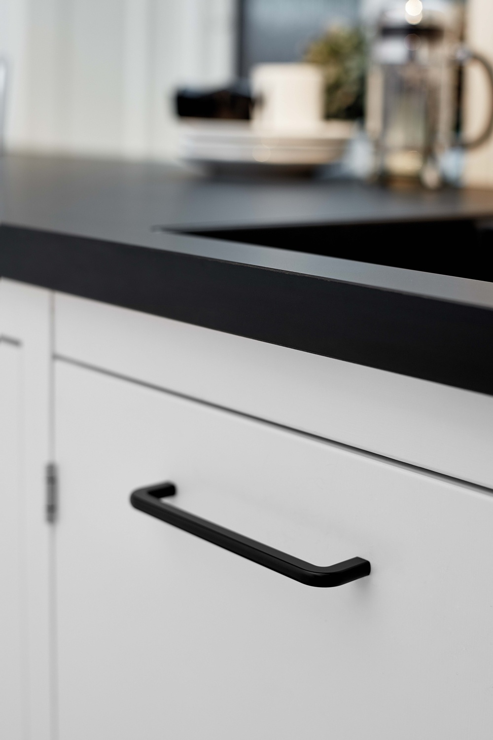 Beschrijving Mooie elegante eenvoudige meubelgrepen van Furnipart gemaakt uit zamac en afgewerkt met een sterke mat zwarte poedercoating.