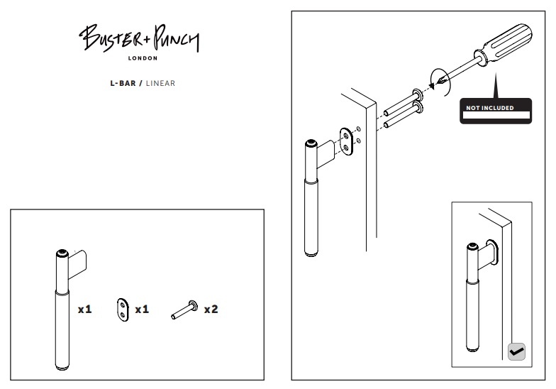 De L-bar greep van Buster & Punch wordt per stuk geleverd inclusief de benodigde bevestigingsmaterialen.
