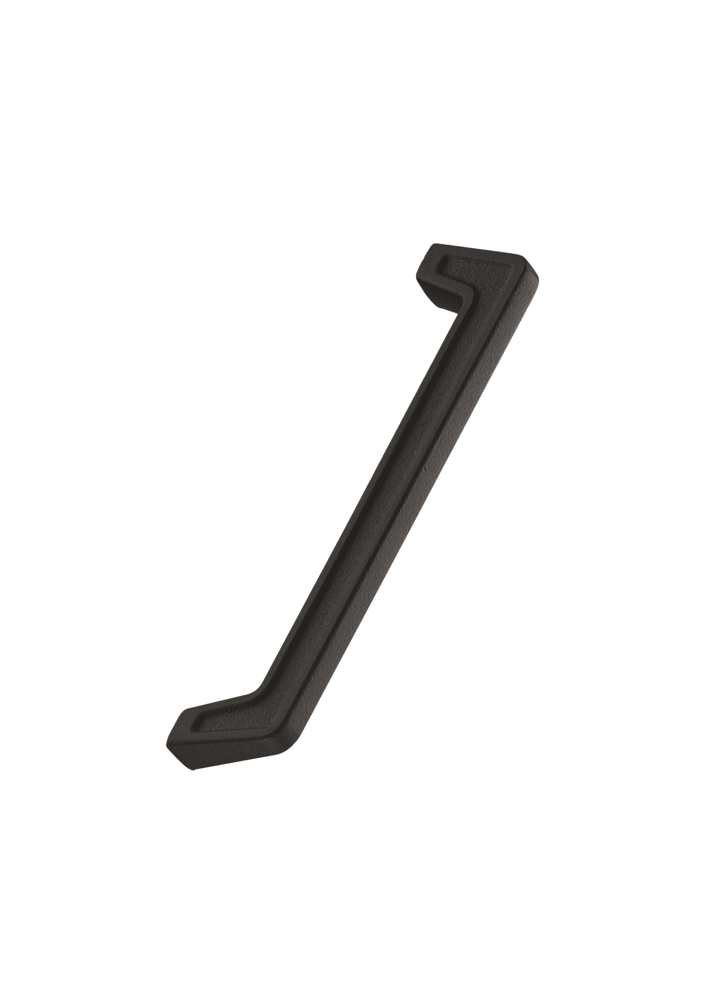 Deze meubelgreep gemaakt uit gietijzer, dat een aantal zeer interessante mogelijkheden bied voor de ontwerper, wordt afgewerkt met een mat zwarte coating. Het betreft hier geen gladde, maar wel een afwerking met een beetje structuur.