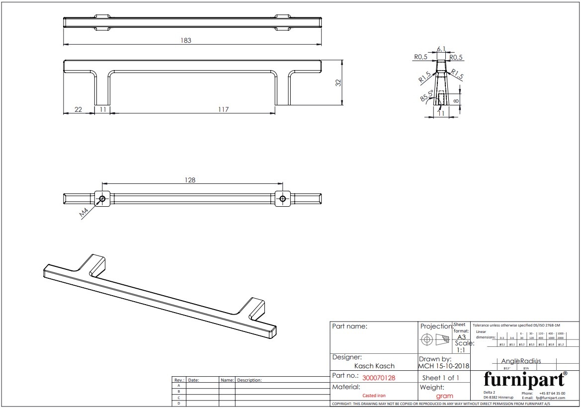 Beschrijving Gietijzeren meubelgreep van Furnipart ontworpen door designstudio Kaschkasch met een mat zwarte structuur afwerking