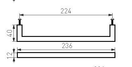 Beschrijving Zwarte meubelgreep uit verouderd ijzer met een asmaat van 224mm en een totale lengte van 236mm