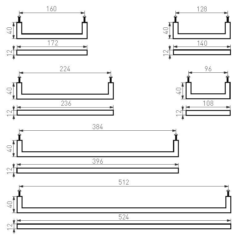 Deze elegante grepen zijn te verkrijgen in 6 afmetingen (96mm - 128mm- 160mm - 224mm - 384mm - 512mm).
