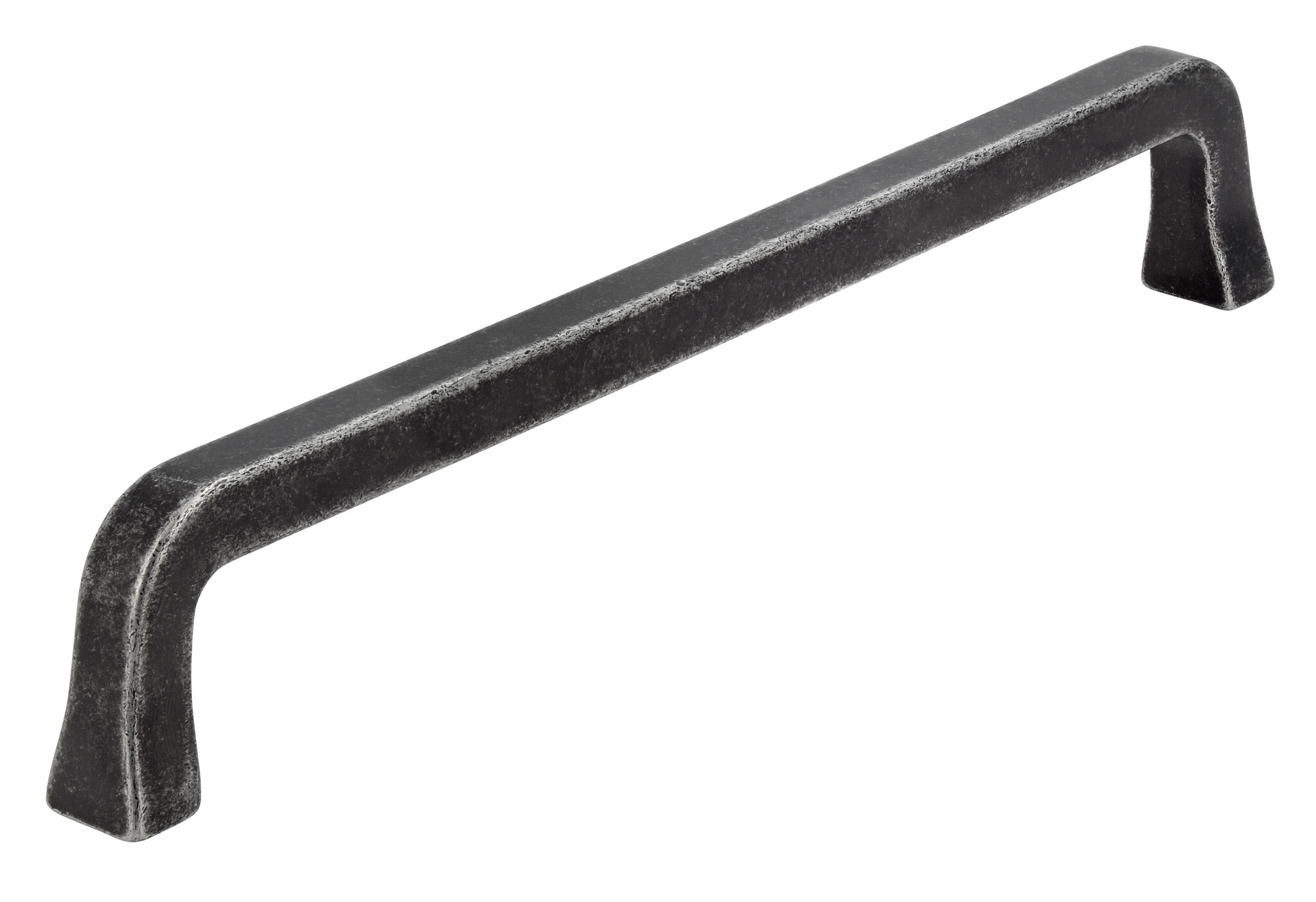 Deze meubelgreep in U-vorm is gemaakt uit zamak en daarna voorzien van een ijzeren coating die geborsteld wordt om zo de antieke look te bekomen en te behouden. Mooi aan deze meubelgreep zijn de afgeronde hoeken in combinatie met een wat breder uitlopende voet.