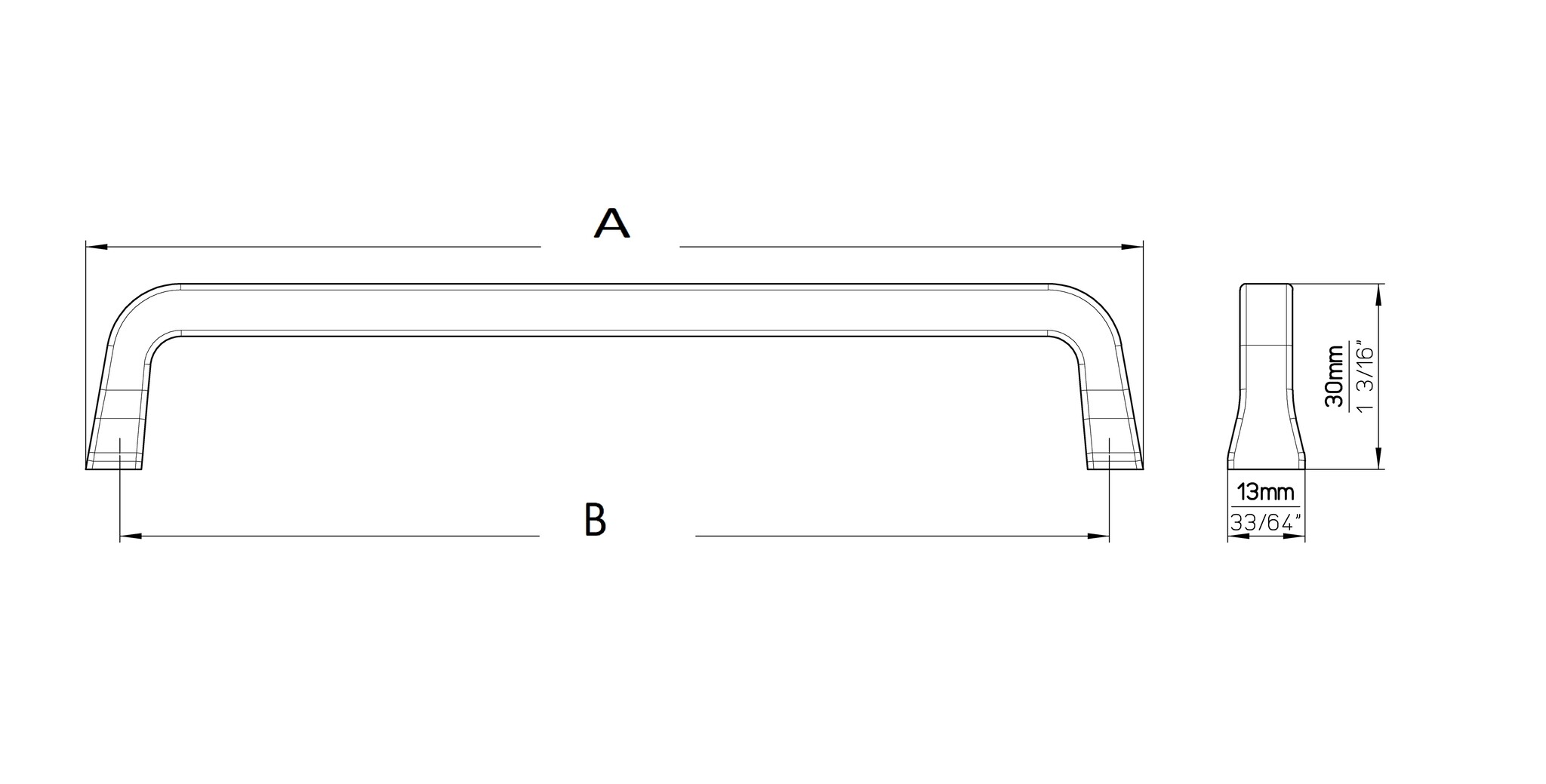 Beschrijving Mooie meubelgreep met een elegante look uitgevoerd in mat zwart met wat breder uitlopende voeten en afgeronde hoeken