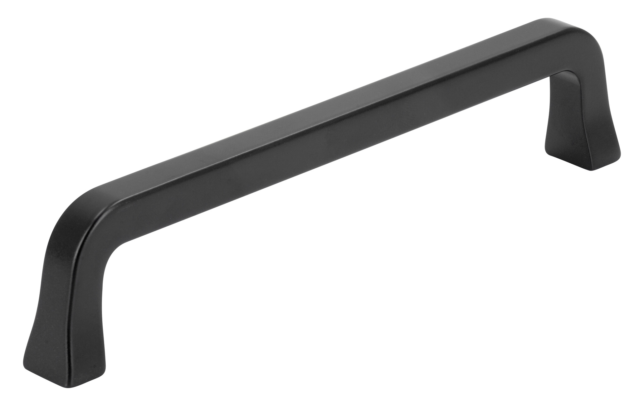 Deze meubelgreep in U-vorm is gemaakt uit zamak en daarna voorzien van mat zwarte coating. Zwart, de trendy kleur van het moment. Mooi aan deze meubelgreep zijn de afgeronde hoeken in combinatie met een wat breder uitlopende voet.